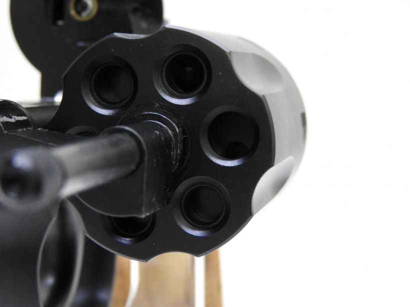 [タナカ] S&W M19 4インチ コンバットマグナム HW Ver.3 シリンダーパッキン1箇所なし (訳あり) 製品参考画像4 シリンダーの弾を詰める穴のうち右側の穴だけパッキンゴムがないため、弾が止まりません。これ以外は正常です。
