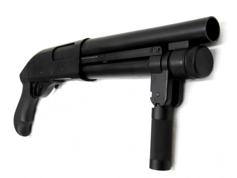 フォアエンドは可倒式グリップとなっており、携行しやすく使用時に瞬時に切り替えられる。