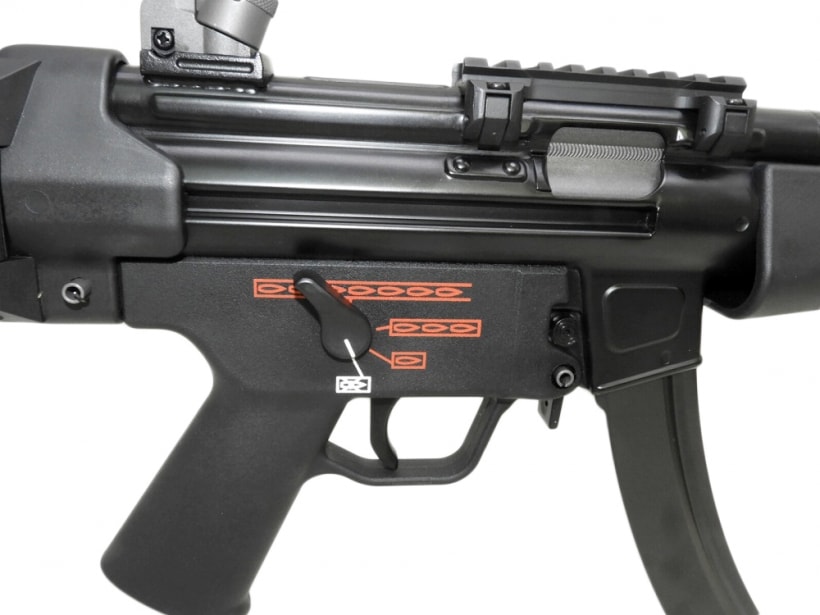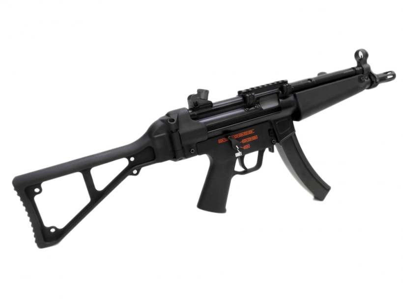 実銃のMP5はドイツ、ヘッケラー&コッホ社の製造する9mm×19拳銃弾を使用するサブマシンガンだ。G3アサルトライフルのローラーロッキングメカニズムを利用したクローズドボルト方式により高い命中精度を誇り、世界各国の特殊部隊や警察、いわゆるローエンフォースメントで使用されている。