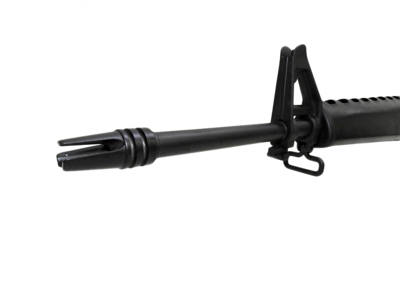 1950年代にコルト社が開発した本格的な突撃銃。AK47やドイツのG3などと肩を並べる3大歩兵銃のひとつM16A1はこれまでの銃とは違い木製パーツなどは一切使用せず、アルミ、鉄、プラスチックで作られた。またAKなど7.62mm弾が自動小銃のスタンダードであったが口径を小さくし5.56mm弾を使用した。ベトナム戦争での投入当初は不具合を頻発したが、その多くは兵士のメンテナンスの怠りや、本来より火薬の量が少ない弾丸を使用していた為と考えられている。その後、整備方法の徹底や各箇所の改善で歴史に名を残す名銃として完成した。