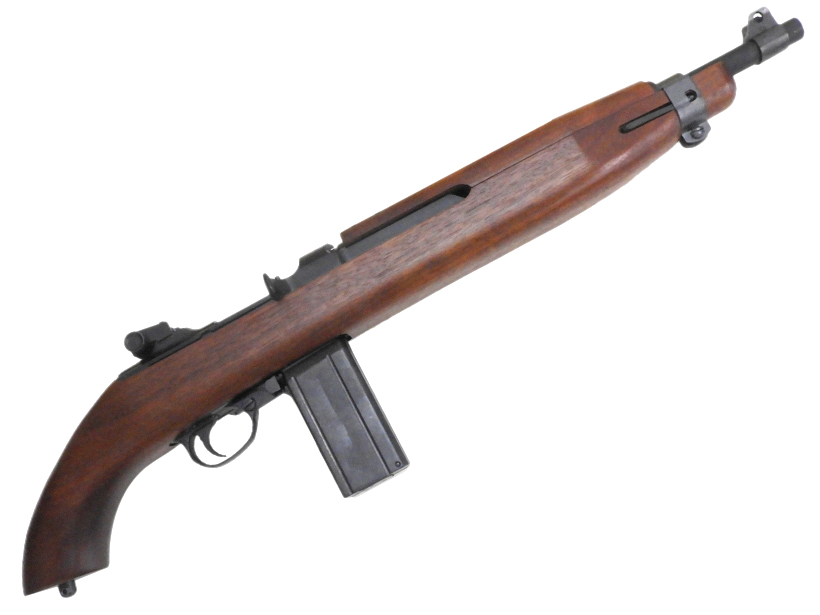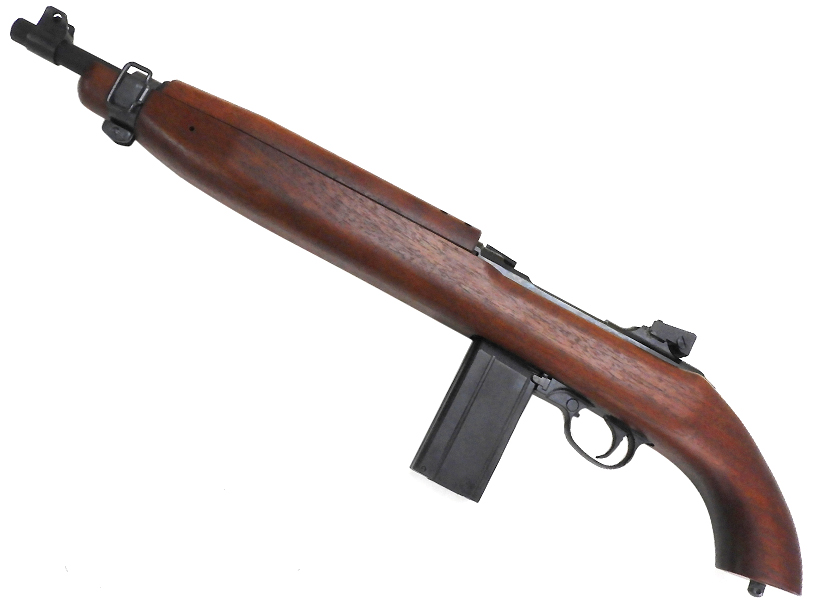 1941年にアメリカで開発された自動小銃。M1カービンの特徴として、ボルトの閉鎖機構はM1ガーランドと同じく回転ボルト閉鎖を採用していたが、ガス圧でボルトを解放する機構には短ガス・ピストン式(玉突き式)を採用していた。(この後、短ガス・ピストン式は多くのアサルトライフルの設計に取り入れられ、AR-18、89式、G36といったモデルに採用されている)M1カービンの使用弾薬である.30カービン弾は、当時の標準的小銃弾に比して遥かに腔圧が低いという特性を持っていたため、これを活かした非常に短いガスピストンが用いられている。この小さなガスピストンは多くの弾数を発射する過程で徐々に変形・腐食して行くため、専用のレンチを用いて交換する事が前提で設計されており、年代物のM1カービンを使用する際にはガスピストンの交換が必要な場合があるので注意が必要である。また.30カービン弾には当時の軍用銃としては世界で初めて低腐食性のプライマー(雷管)が採用され、高温・高圧のガスに晒されるガスピストン(更に耐食性を高めるため後期にはステンレス製となった)や銃身内部を始めとする各部の腐食を減らし、耐用年数を大幅に延命させる事に成功した。当初、M1カービンはフルオート射撃を可能とする設計だったが、全長の短さと軽量さからフルオート射撃時のコントロールが難しく、量産型ではセミオート射撃(半自動)のみとなった。軽く取り扱いが容易なM1カービンは後方支援用火器だけではなく、前線の下士官などにも愛用され、その他にも折りたたみ式ワイヤー式銃床を装着したM1A1カービンは空挺部隊やオートバイ兵に対しても支給されている。M1カービンの生産はウィンチェスター社以外にも数社で行われ、全シリーズを通して最終的に約600万丁ほど生産された。支給を受けた同盟国の兵士にも好評で、またドイツ国防軍や日本軍の兵士も鹵獲した本銃を好んで使用した