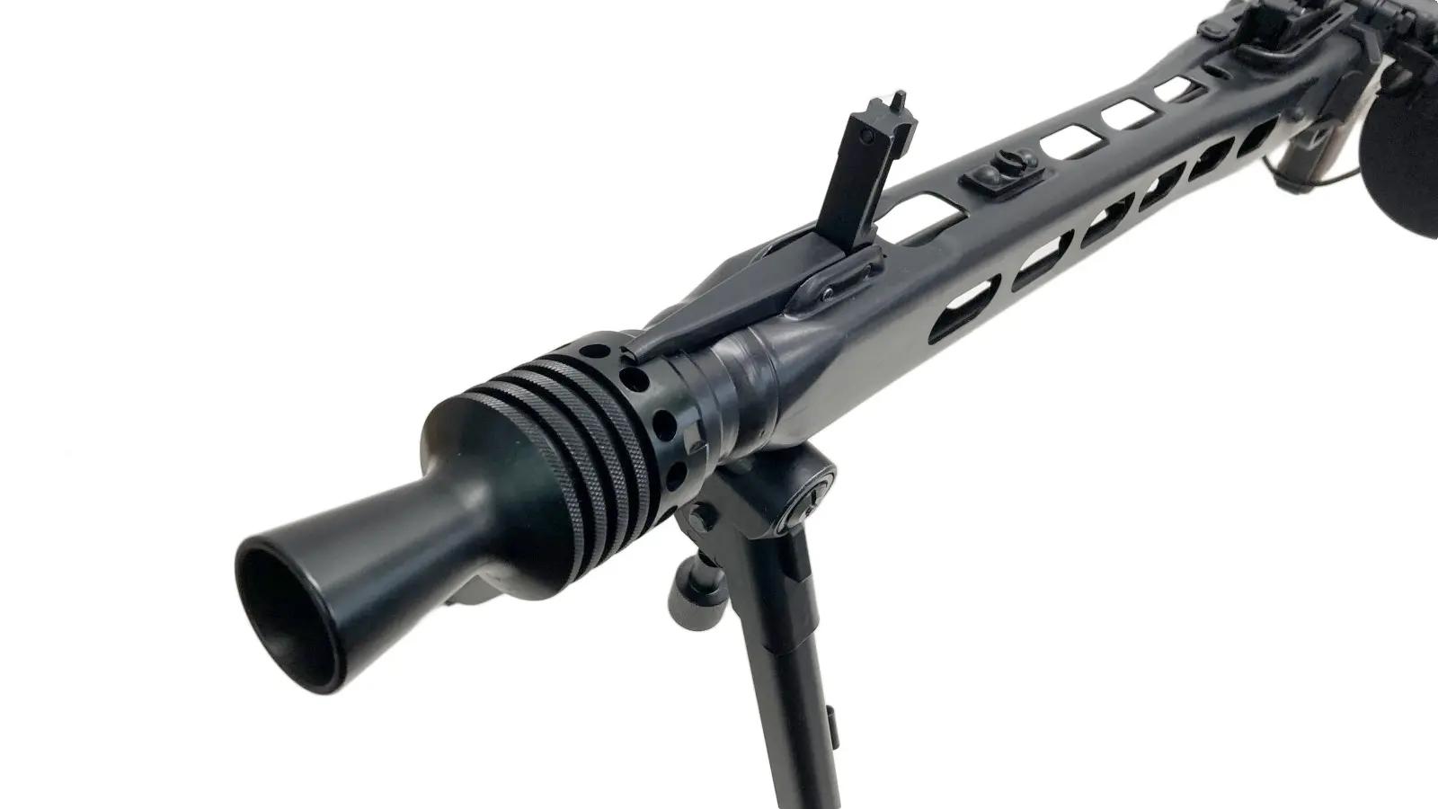 フルメタルで忠実に再現すると12kgほどになってしまうMG42を、フロント部とフレームをそれぞれ一体型アルミプレス成型とすることで、7kg台まで軽量化!