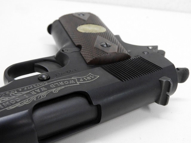 コルトガバメントM1911の第一次世界大戦のメモリアル記念モデル。M1911のスライドに「シャトー・テリーの戦い」(The Battle of Chateau Thierry)という第一次世界大戦の有名な戦いの場面等が刻印されている。HW仕様。