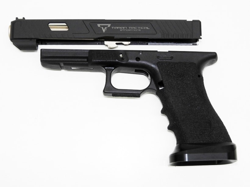 ハンドガンの場合は全体を金属性とする組み換え、エアソフトガンの場合は射出エネルギー0.98J以上にする改造を行うと銃刀法違反となります。HFC134a仕様のガスガンにCO2用マガジンを組み込む、スライドを金属製の物に差し替える等、簡易な改造でも罪に問われる可能性がございますので、絶対にお止めください。