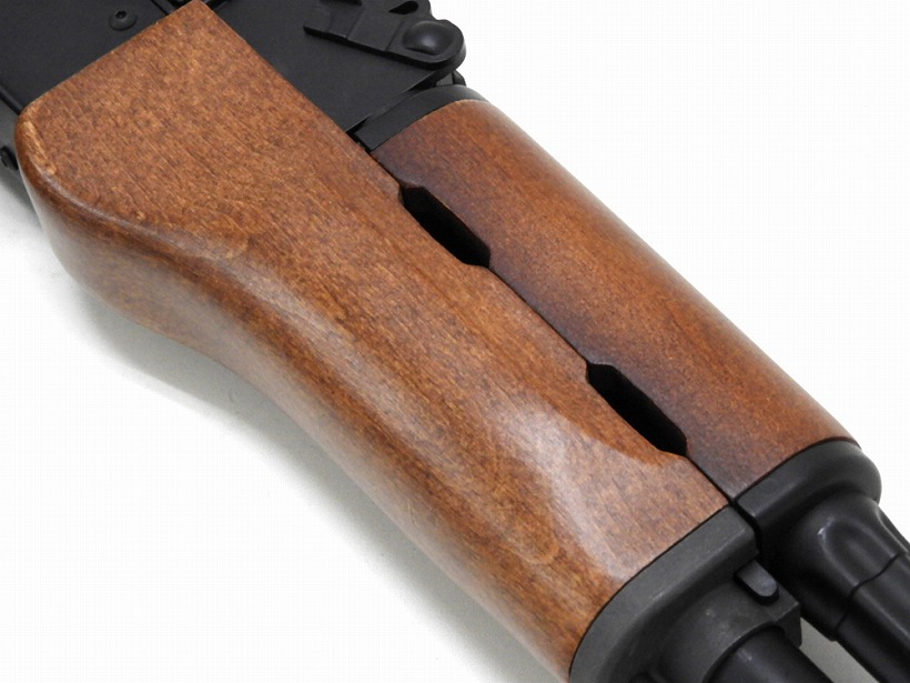 本体はバレルやレシーバーなど主な部品が金属製で質感がとてもリアル。レシーバーカバーを開けるとボルトとリコイルスプリングが再現されており、他のAKタイプ電動ガンでは見られないこだわりを感じる1丁となっています。