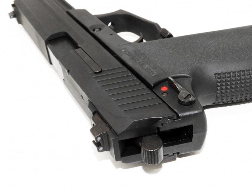 (1)ノックダウンパワー(=着弾時のインパクト力)に優れた.45ACP弾を使用し、装弾数は10発以上であること。