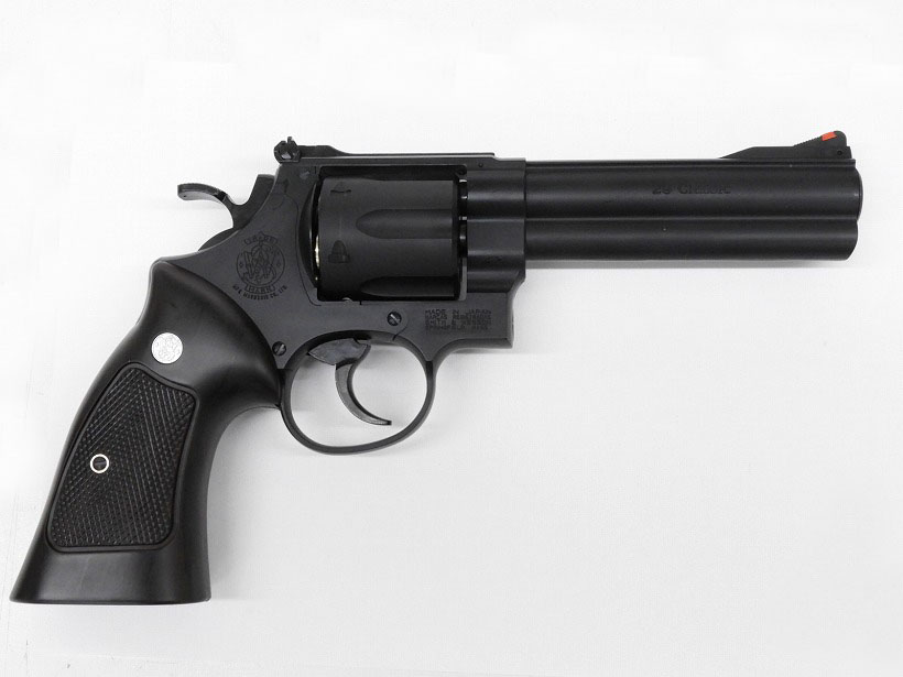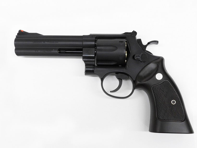 1956年に スミス&ウェッソン社が開発した.44口径の回転式拳銃。狩猟用として開発された.44Magnum弾を、対人用に振り替えたもの。当時史上最大の大口径銃として売り出され、映画「ダーティハリー」においてクリント・イーストウッド演じる主人公ハリー・キャラハンが使用して一躍有名になった。