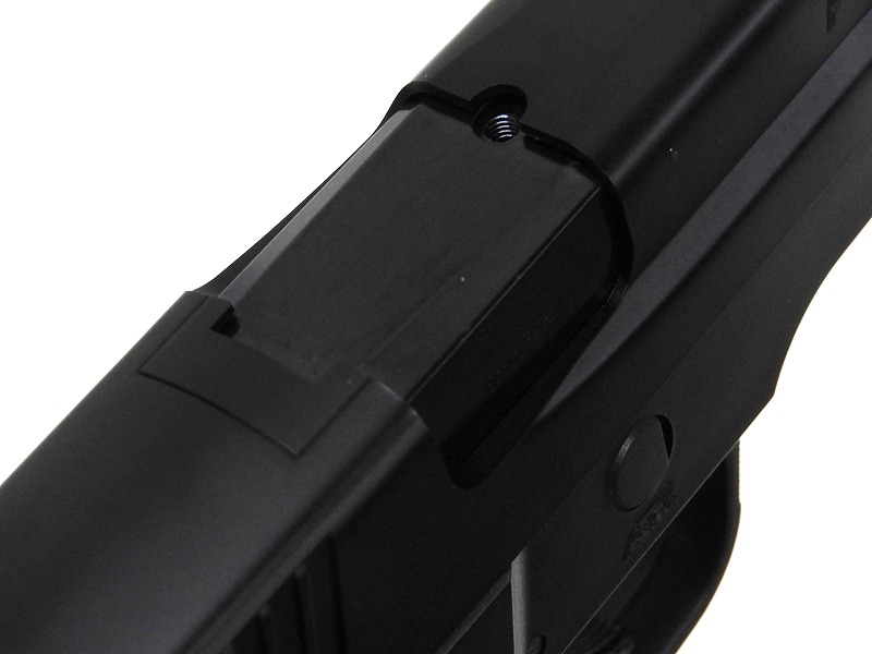 エアーコッキングガンながら珍しいP228。マッドブラック仕上げはなかなかに美しい仕上げ。ホップアップにあたるBASが搭載されている。
