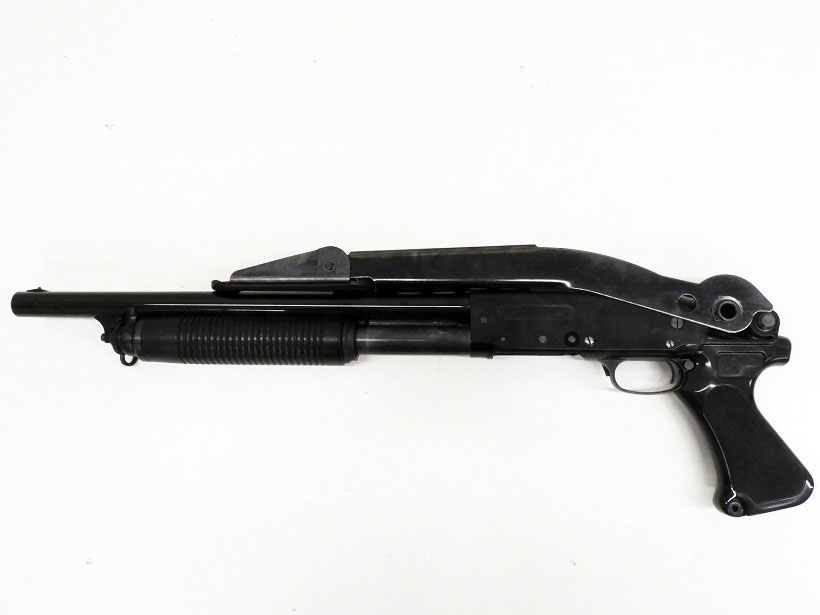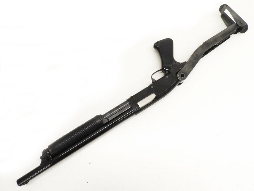 メタルフォールディングストック付のレミントンM31ショットガン。グリップ下部スイベル欠品。