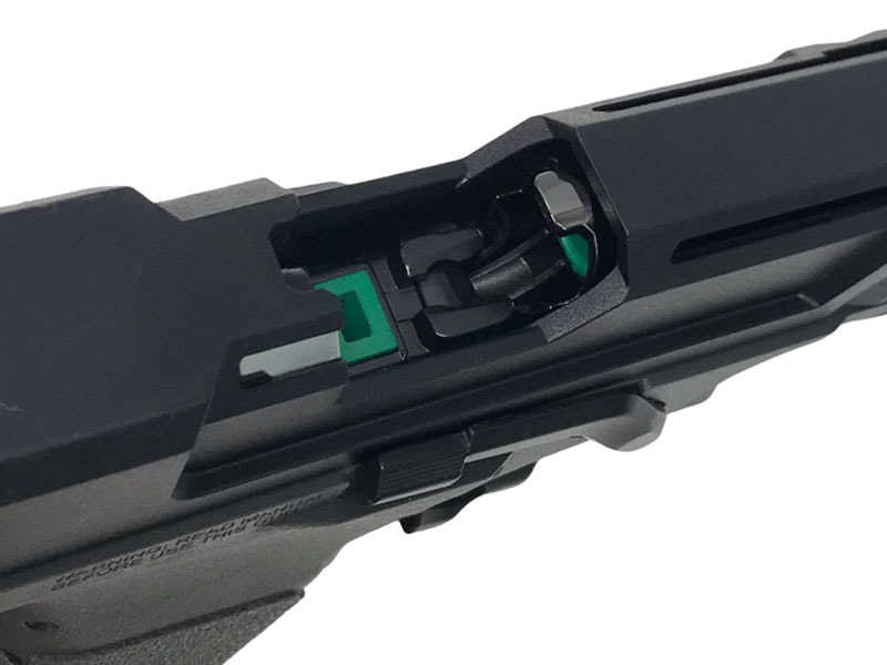 ホップアップはバックストラップに内蔵されたアジャストツールを取り出し、マズルに差し込むことで調整可能。現代においてハンドガンに求められるすべてが詰まっていると言っても過言ではない仕様。
