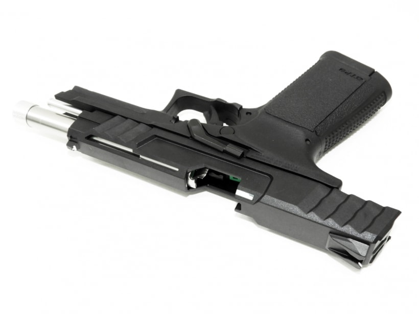 強化樹脂製スライドを採用し、HFC134aガス向けのJPバージョン。ベースはグロックでグリップはAR15カスタムグリップを思わせるスムースな形状。