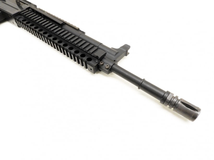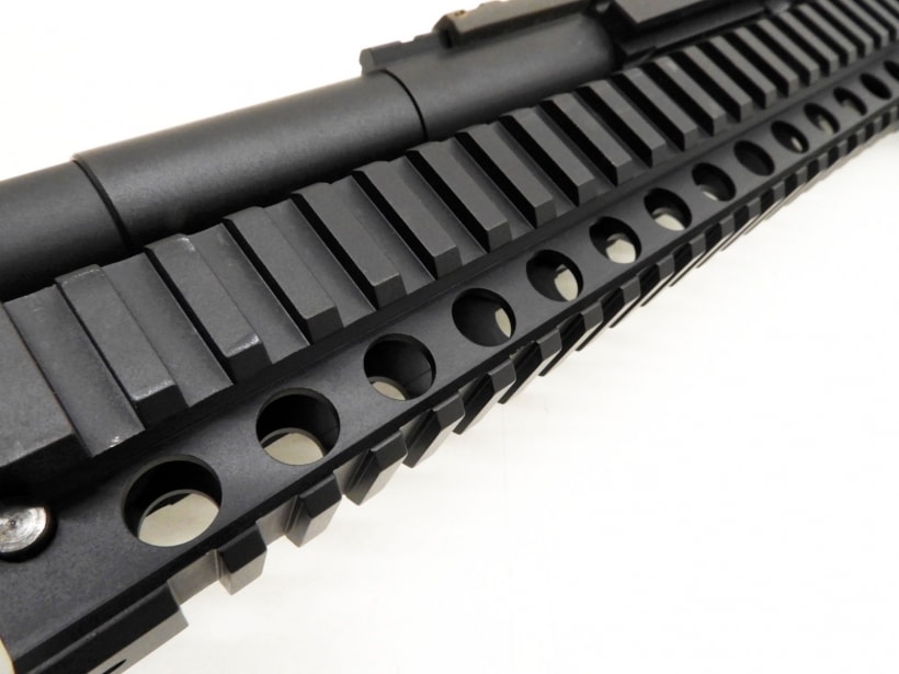 マルイのスタンダード電動ガンベースに海外製のレイルやストックを組み込んだものではないかと思われますが、原型を留めていませんので詳細不明品としています。