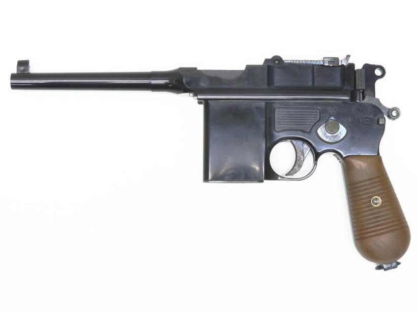 1896年にモーゼル兄弟(ヴィルヘルム・モーゼル、ポール・モーゼル)が開発した。このデザインは弾倉が銃把の前にあるため重心が前にあり、射撃競技銃のように正確な射撃が可能であり、ストックを併用するとカービンとして使用できた。「箒の柄(ブルームハンドル)」とあだ名された独特の形状をしたグリップは、掌の小さな小柄な民族でも関係なく使用できる利点があり、そのまま採用され続けた。この銃は馬上などでも使いやすいということで、清朝末期以降の中国の軍人や馬賊にも愛用された。同銃は100万丁以上生産され、旧式化してもなお中国を最大のマーケットとして1936年まで生産され続け、チャーチル・金日成・ホーチミンといった当時の著名人にも使用されている事でも有名である。他の自動拳銃に比べて倍近い価格だった事や、目を引くデザインだった事からステータスシンボルでもあり、まだ信頼性の低かったマガジン給弾式に比べて、信頼性の高い固定弾倉式だった事で、20世紀前半で最も知られた自動拳銃となった。
