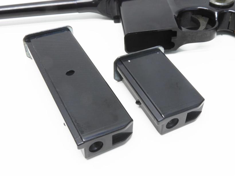ショートマガジンとロングマガジンの2種類が付属します。今では見られない外部ソース式(BV式)のガスガンとなっています。
