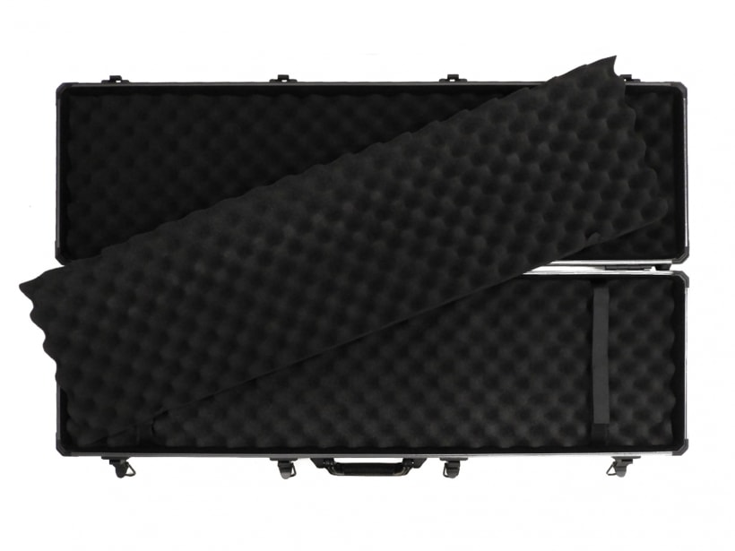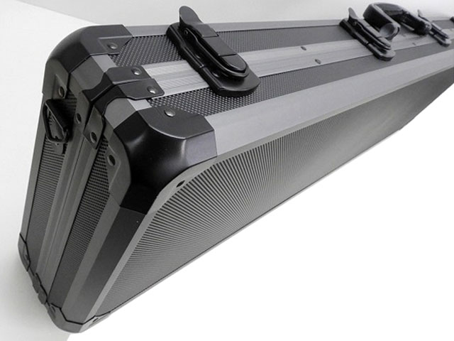 アタッシュケース型のガンケース。リーズナブルな価格にかかわらず見た目は相当しっかりしていて高級感さえ漂わせます。