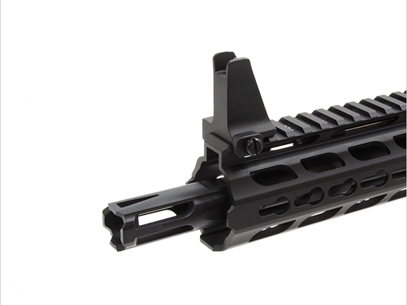 ハンドガードが覆いかぶさるようにKRYTACフラッシュハイダーが装備されたデザイン。