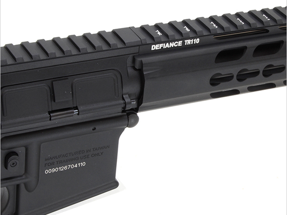 ハンドガードには非常高い剛性を持つDEFIANCE(ディファイアンス)ブランドのKEYMODレイルハンドガードを装備。
