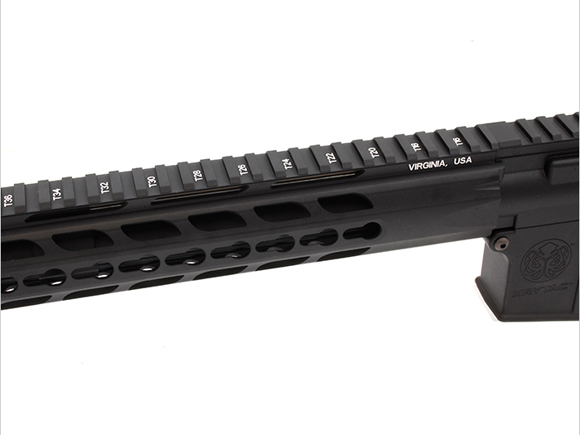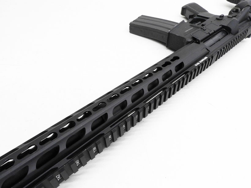 ハンドガードには非常高い剛性を持つDEFIANCE(ディファイアンス)ブランドのKEYMODレイルハンドガードを装備。