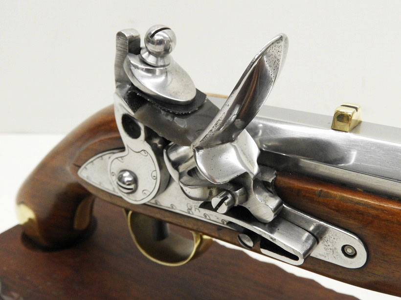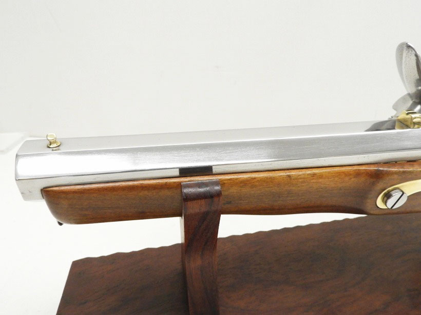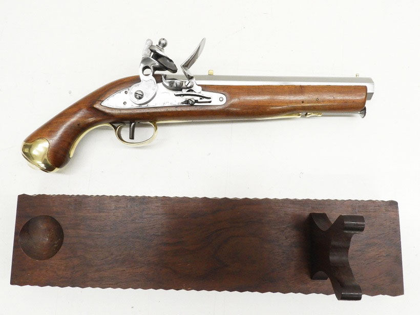 ミロク ブラウンベス フリントロックピストル。稼働式。木製スタンドもセットで付属。