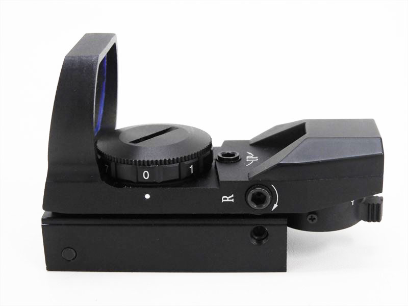 4種類のレティクルを切り替えて使え、レッドカラーで7段階に輝度調整が可能です。