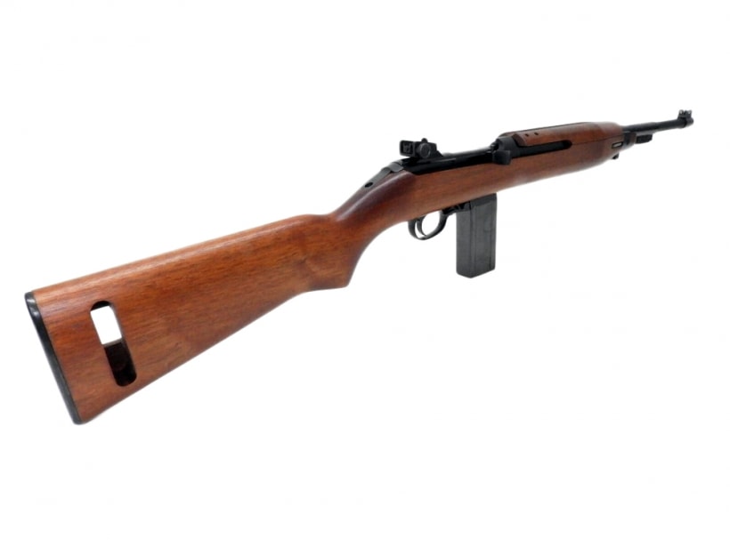 1941年にアメリカで開発された自動小銃。M1カービンの特徴として、ボルトの閉鎖機構はM1ガーランドと同じく回転ボルト閉鎖を採用していたが、ガス圧でボルトを解放する機構には短ガス・ピストン式(玉突き式)を採用していた。(この後、短ガス・ピストン式は多くのアサルトライフルの設計に取り入れられ、AR-18、89式、G36といったモデルに採用されている)M1カービンの使用弾薬である.30カービン弾は、当時の標準的小銃弾に比して遥かに腔圧が低いという特性を持っていたため、これを活かした非常に短いガスピストンが用いられている。この小さなガスピストンは多くの弾数を発射する過程で徐々に変形・腐食して行くため、専用のレンチを用いて交換する事が前提で設計されており、年代物のM1カービンを使用する際にはガスピストンの交換が必要な場合があるので注意が必要である。また.30カービン弾には当時の軍用銃としては世界で初めて低腐食性のプライマー(雷管)が採用され、高温・高圧のガスに晒されるガスピストン(更に耐食性を高めるため後期にはステンレス製となった)や銃身内部を始めとする各部の腐食を減らし、耐用年数を大幅に延命させる事に成功した。当初、M1カービンはフルオート射撃を可能とする設計だったが、全長の短さと軽量さからフルオート射撃時のコントロールが難しく、量産型ではセミオート射撃(半自動)のみとなった。軽く取り扱いが容易なM1カービンは後方支援用火器だけではなく、前線の下士官などにも愛用され、その他にも折りたたみ式ワイヤー式銃床を装着したM1A1カービンは空挺部隊やオートバイ兵に対しても支給されている。M1カービンの生産はウィンチェスター社以外にも数社で行われ、全シリーズを通して最終的に約600万丁ほど生産された。支給を受けた同盟国の兵士にも好評で、またドイツ国防軍や日本軍の兵士も鹵獲した本銃を好んで使用した