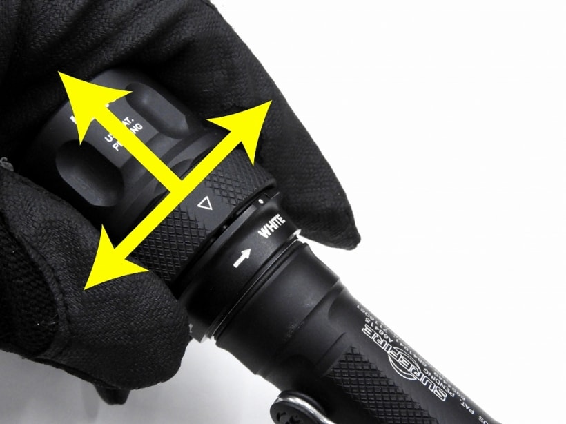 [SUREFIRE] V2 バンパイア IR/WHITE LED (中古) 製品詳細画像3 ベゼル下のリングを照射方向に引っ張り上げて回すことでLEDに切り替えができます