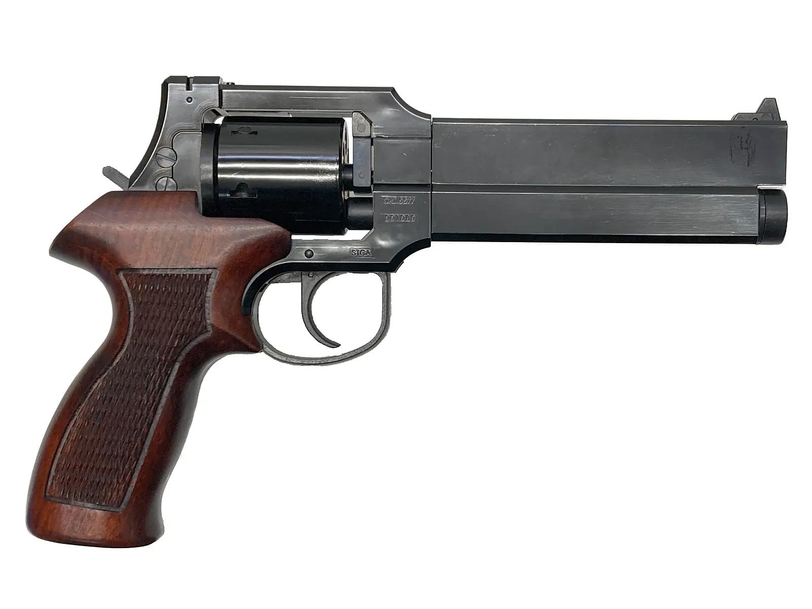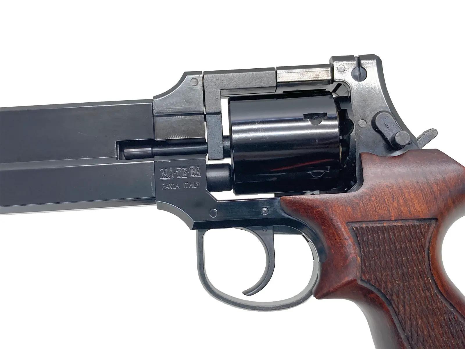 架空の銃のようだが、実際にイタリアのマテバ社で設計・製造・販売されていたモデルで通常のリボルバーと異なり、銃身が下部に設置されている事が大きな特徴。