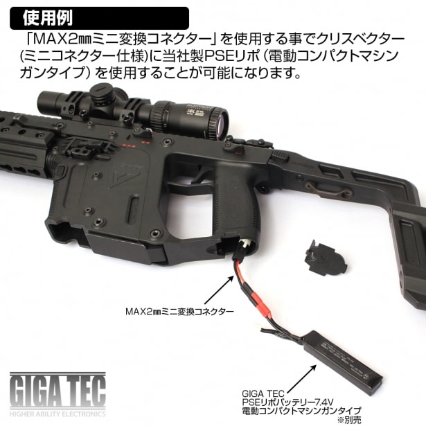 「MAX2mmミニ変換コネクター」を使用する事でクリスベクター(ミニコネクター仕様)に当社製PSEリポ(電動コンパクトマシンガンタイプ)を使用することが可能になります。!