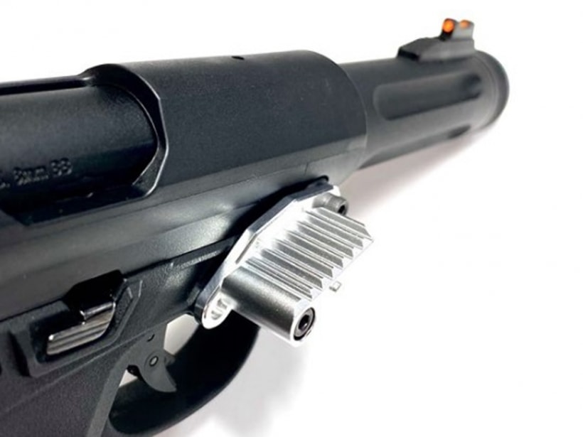 ハンドガンの場合は全体を金属性とする組み換え、エアソフトガンの場合は射出エネルギー0.98J以上にする改造を行うと銃刀法違反となります。HFC134a仕様のガスガンにCO2用マガジンを組み込む、スライドを金属製の物に差し替える等、簡易な改造でも罪に問われる可能性がございますので、絶対にお止めください。