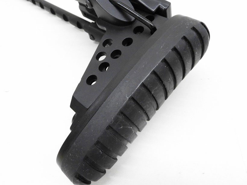 銃全体のシルエットをガラリと変えてしまうカッコ良さ!重厚なフルメタルで剛性が一気にUP!安心して身体を預けることができます。しかもストックのベース部分にはQDスリングスイベルアダプター(別売)が装着でき、スリングの取り回しも自在に行えます!