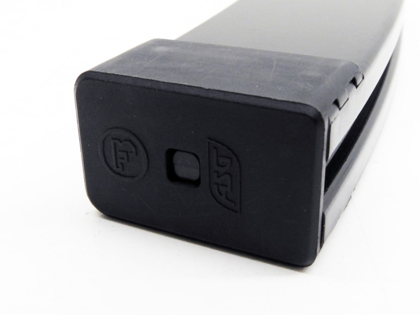 樹脂製で軽量でありながら剛性も高い。マガジン底部には刻印が入っています。