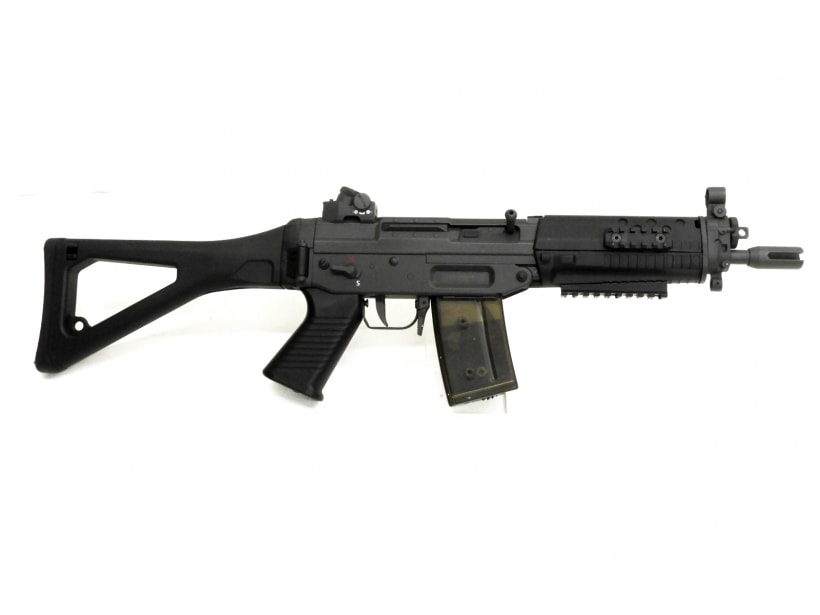 SIG SG552は、スイスのシグ社(現スイス・アームズ社)により開発された特殊部隊向けアサルトライフル。SIG SG550のコマンドカービンバージョンSIG SG551をさらにコンパクトにしたもので、ハンドガードと銃身が短くなっている。室内近接戦闘(CQB)では、発射可能な状態のまま銃床を折りたたむことで、銃全体を半分近くまでコンパクトにすることができる。このモデルは、世界中の軍隊や警察の特殊部隊や法執行機関によって使用されている。現在は改良型のSG553にモデルチェンジされている。