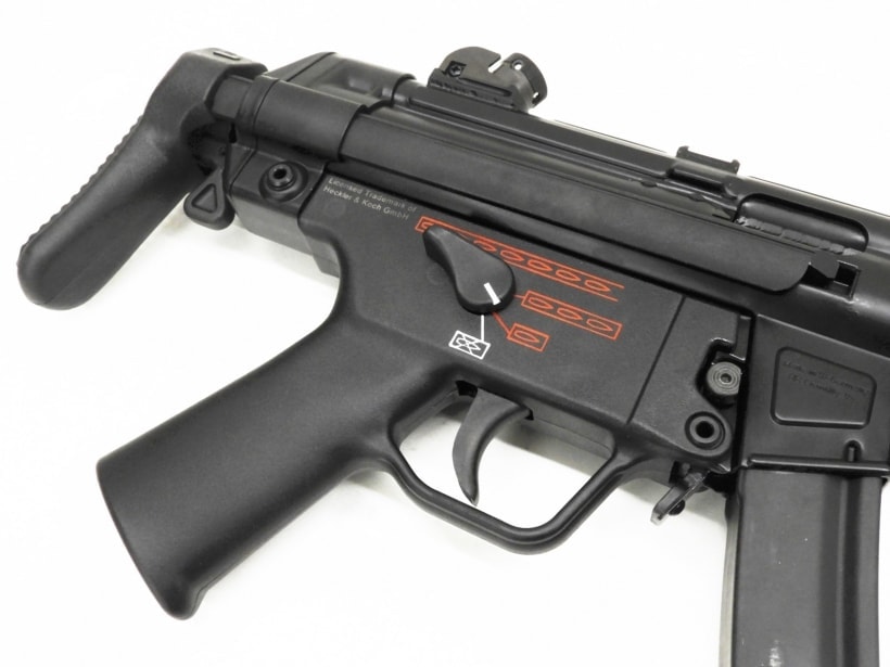 ドイツのヘッケラー&コッホ社が設計した短機関銃。G3自動小銃を元に9x19mmパラベラム弾仕様に縮小した設計で、命中精度の高さに定評がある。第2次世界大戦後に設計された短機関銃としては最も成功した製品の一つ。1966年に西ドイツの連邦国境警備隊に制式採用されたのに始まり、現在では対テロ作戦部隊などでは標準的な装備となっている。MP5A5は第二期改良型のうち伸縮式ストック装備のものになる。