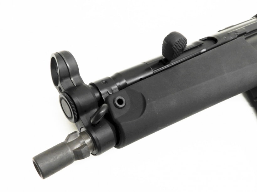 スペック面だけでなく、きしみ皆無で合わせ目処理なども進歩しています。伸縮可能な「リトラクトストックや、マットな質感で滑りにくい加工が施されたハンドガードもナイロン製で頼れる強度感です。コッキングレバーサポートはダイカスト製で、MP5系にありがちなコッキングレバーがもげる心配もなさそうです。