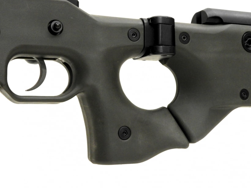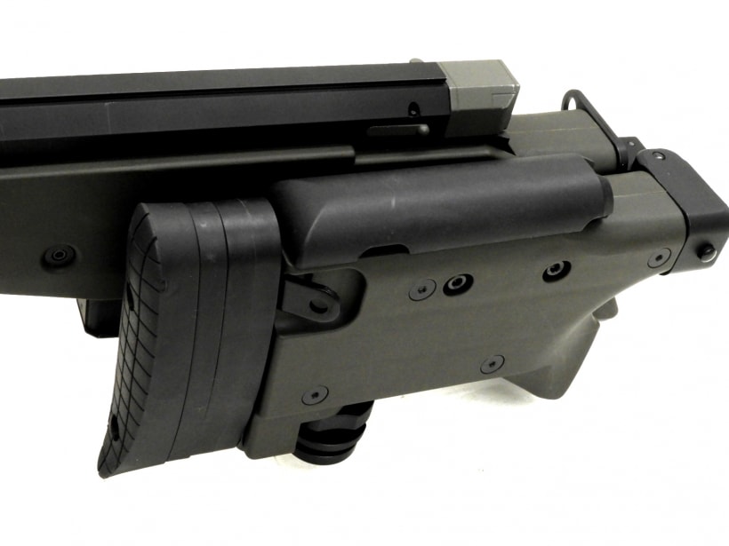 チークピースとバットプレートは長さ・高さを調節可能であり、多様な好みに対応できる。