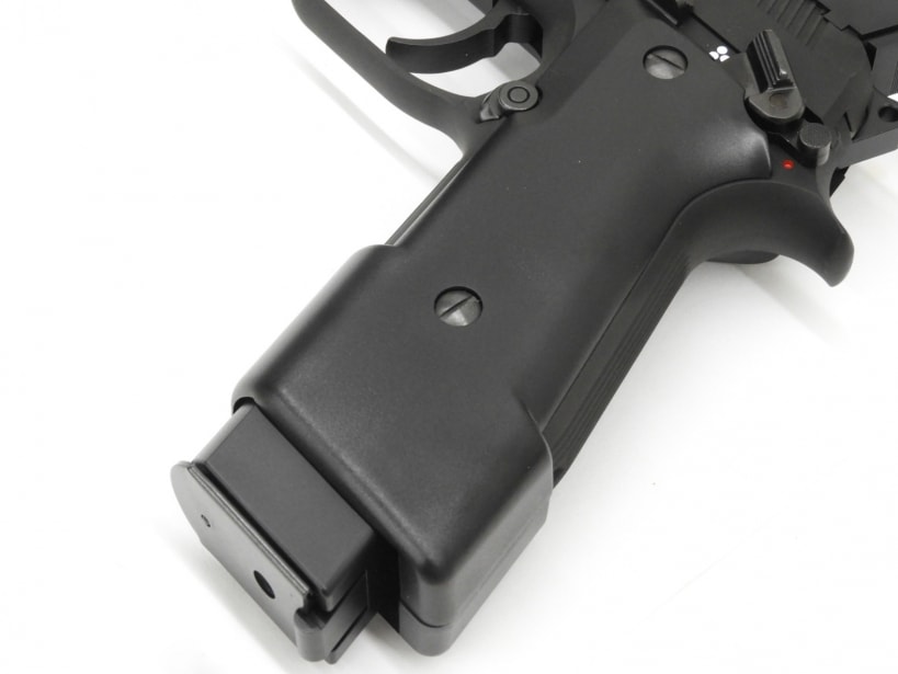 ハンドガンの場合は全体を金属性とする組み換え、エアソフトガンの場合は射出エネルギー0.98J以上にする改造を行うと銃刀法違反となります。HFC134a仕様のガスガンにCO2用マガジンを組み込む、スライドを金属製の物に差し替える等、簡易な改造でも罪に問われる可能性がございますので、絶対にお止めください。