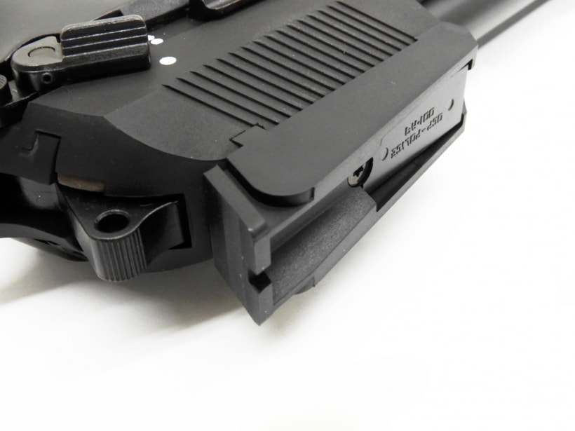 本体スライド部とフレーム部がHW素材となり、イメージ通りのずっしりとした重量感と、金属的な冷たい質感を演出。 従来オート9cでオミットされていたリアルな刻印も復活!!