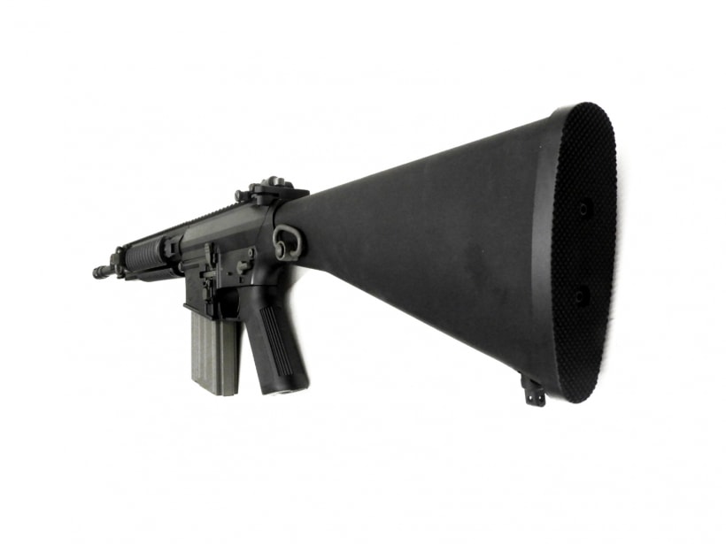 米国の特殊作戦用小火器メーカー・KAC(ナイツ・アーマメント・カンパニー)社が製造を手掛ける、7.62mmオートマティックライフルの傑作『SR-25』シリーズの最新軍用バージョンをモデルアップ!レシーバーはマガジンキャッチ/セレクターレバー/ボルトキャッチなどのコントロール系が全てアンビデクストラス(両利き)使用となっており、利き腕を選ばずに使用可能。