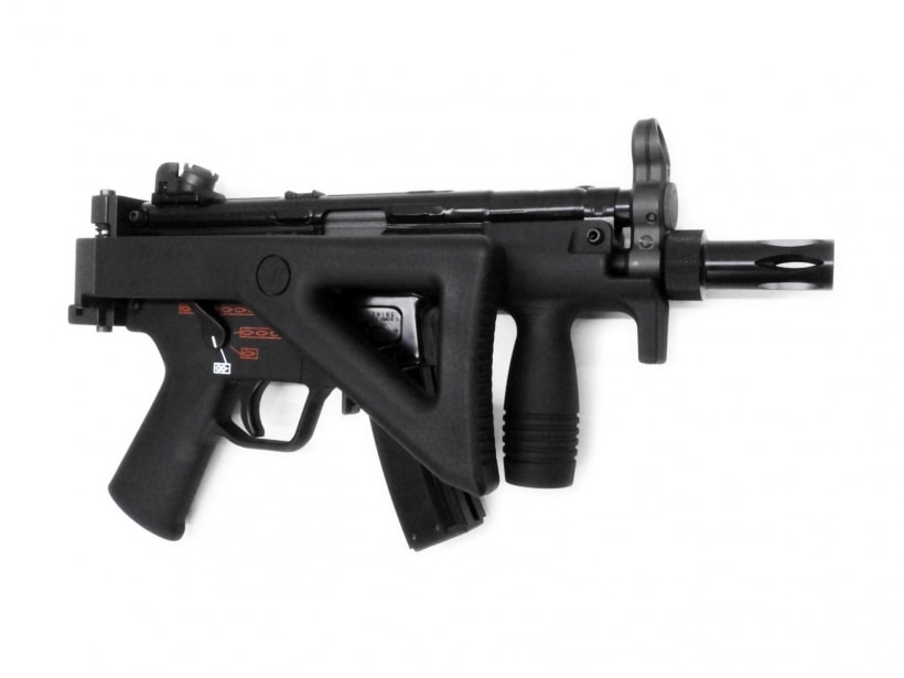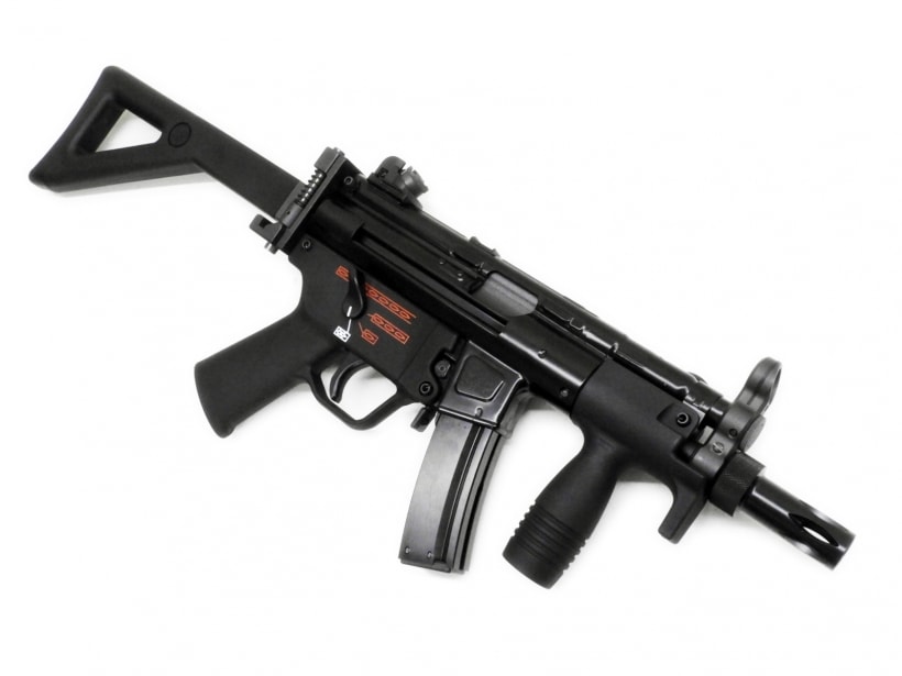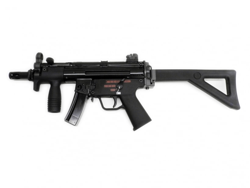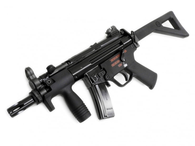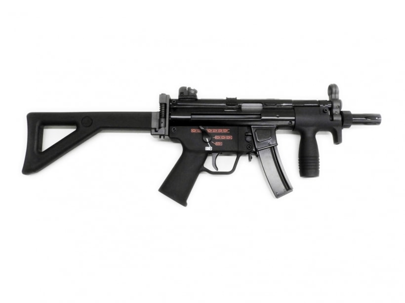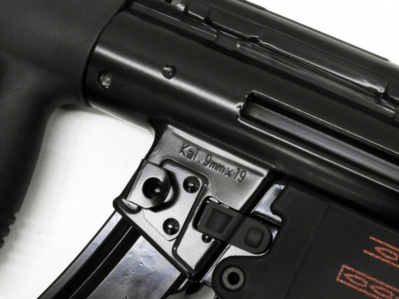 実銃のMP5はドイツ、ヘッケラー&コッホ社の製造する9mm×19拳銃弾を使用するサブマシンガンだ。G3アサルトライフルのローラーロッキングメカニズムを利用したクローズドボルト方式により高い命中精度を誇り、世界各国の特殊部隊や警察、いわゆるローエンフォースメントで使用されている。