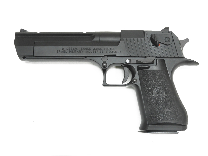 イスラエルのIMI社が生産している超大型自動拳銃。初期は動作不良が多く売れ行きはよくなかったようだが改良が加えられ、市販のリボルバー用44マグナム弾が使用でき1991年には大口径の50AE弾モデルが発表され確固たる地位を築いた。強烈なパワー、衝撃は間違いないが、よく映画などで女子供が撃つと肩の骨が外れるほどの威力があると噂されているが実際は大型スライドが衝撃をおさえそのようなことは起きない。エイリアンVSプレデターなどでも登場する。この銃を向けられたら誰もが底知れない恐怖を味わうことになるだろう。