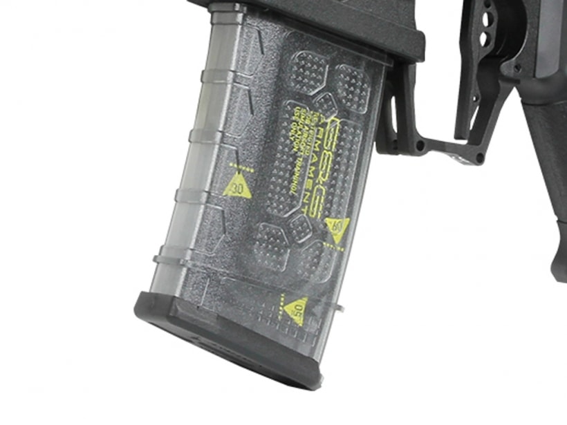 マガジンは半透明樹脂で残り段数のカウンターが付いていて段数の確認ができるため、