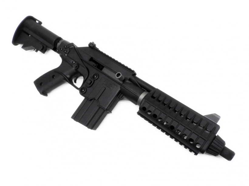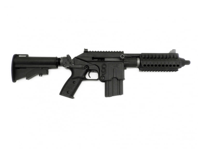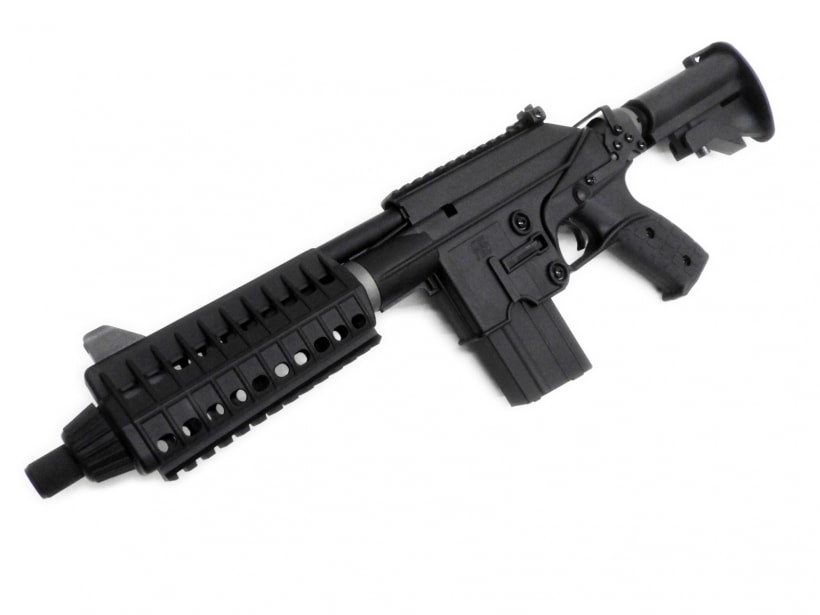 米国KelTec(ケルテック)社が開発したこの銃は、AR-15(M16)のシステムを流用して5.56mm弾を発射できる「拳銃」。