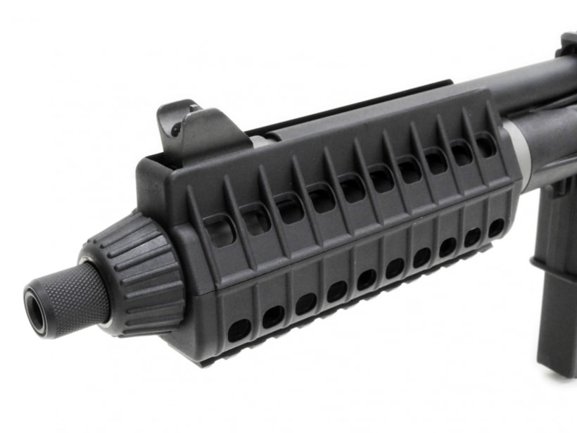 ストックやハンドガードを取り付けてライフル仕様にしてもまだ非常に軽量なこの銃を、
