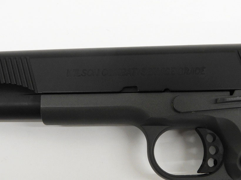 「ウイルソン・コンバットCQB」スライドがウィルソンコンバットサービスグレイド刻印。グリップはアルタモントダイヤチェッカーグリップとなっています。