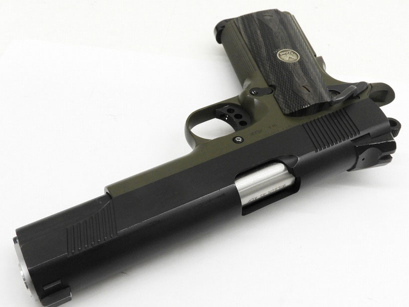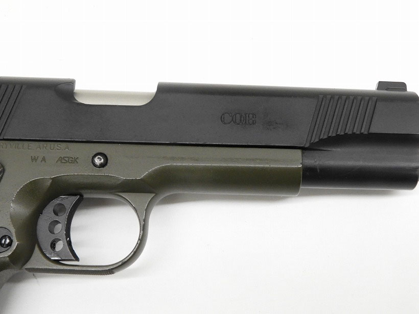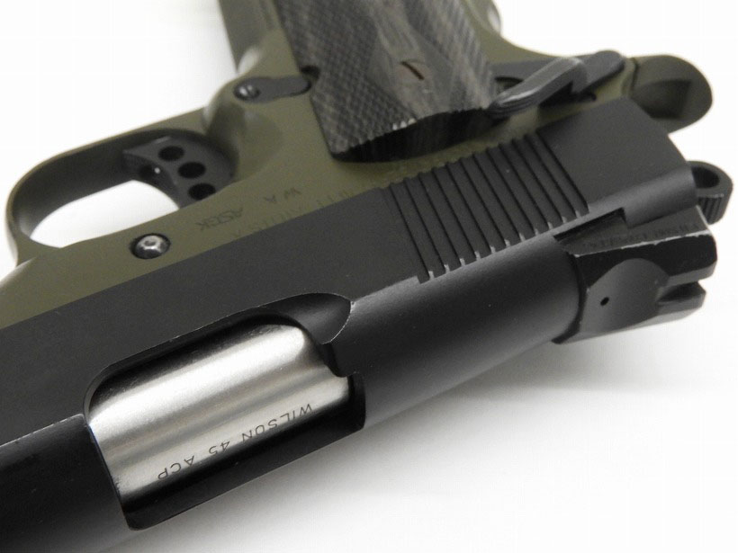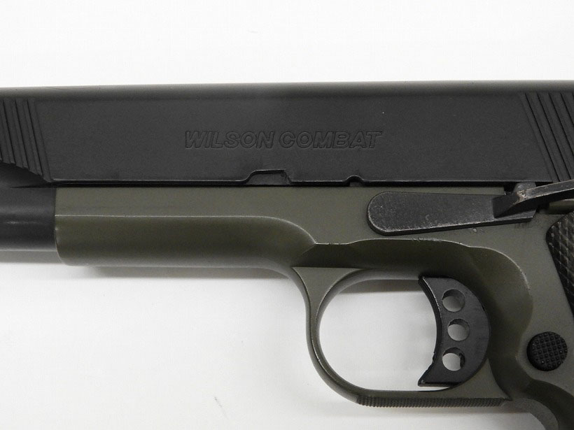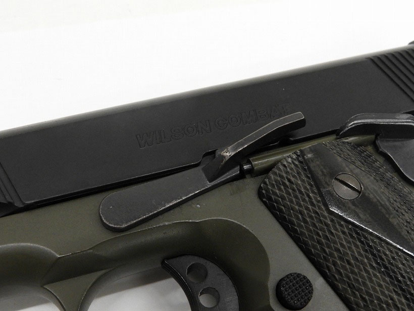実銃では4種類のカラーオプションが存在する「ウイルソン・コンバットCQB(Close Quarters Battle)」。その内のひとつ、ブラック/OD(オリーブドラブ)の2トーンという独特のカラーリングのモデル。