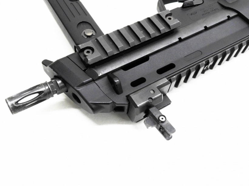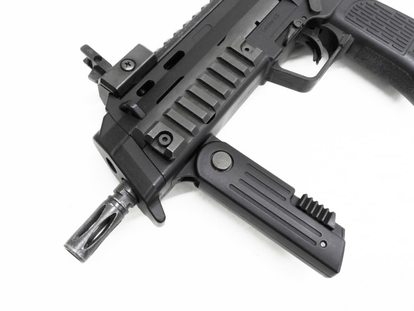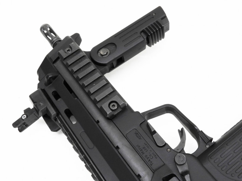 写真で見ると長物のような気もするが、ストック収納時は全長380mmというコンパクトサブマシンガンである。H&K社がFN社のP90への対抗馬として、1999年に発表したモデルで、エアガンではバッテリーからメカボックスから新開発されたものを注ぎ込んだニューフェイスである。