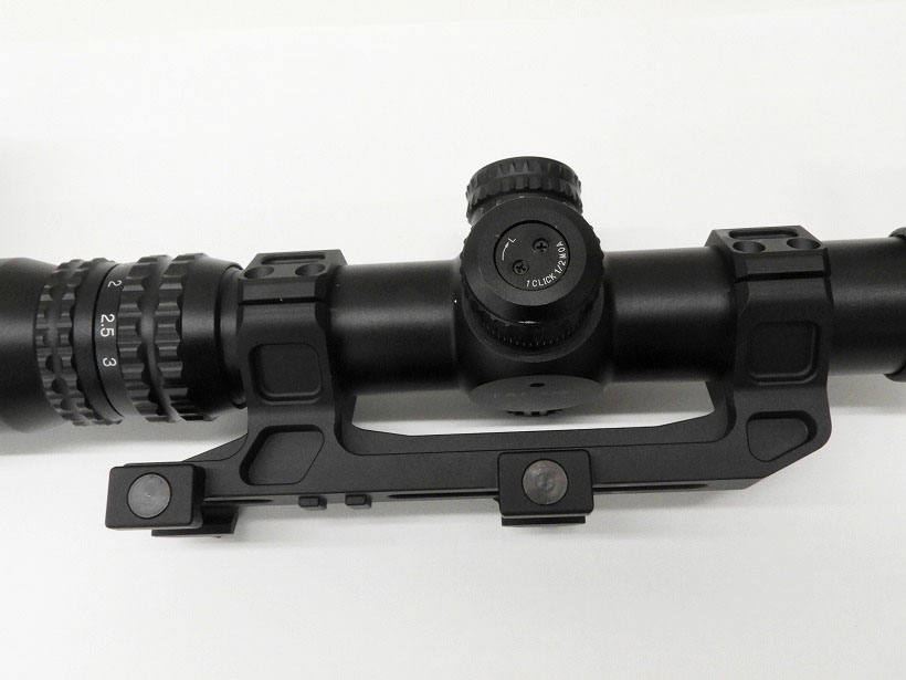 倍率:1.2-4×24/チューブ径30mm/レティクル:ミルドット/イルミネーション:レッド(0〜11段階調光) 画像のマウント付きでそのまま20mmレイルに装着可能!