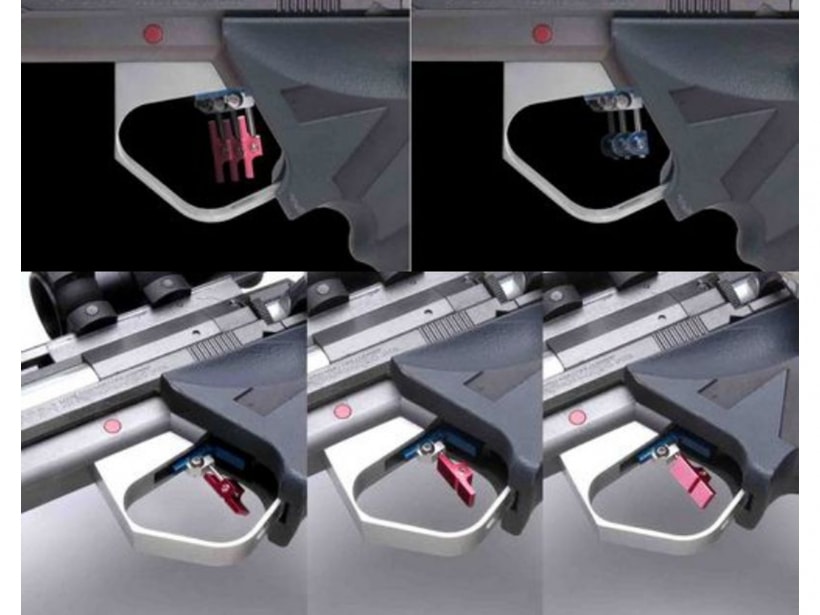 トリガーは射手と銃とを繋ぐ最も重要な接点です。 トリガーフィーリングを向上させるべく、トリガーシューはスクエアタイプとボールタイプの2種類御用意。 どちらもトリガーシューの位置の前後調整はもちろん首振りも可能です。 しかもアルミ製なので重さは純正の半分以下です。