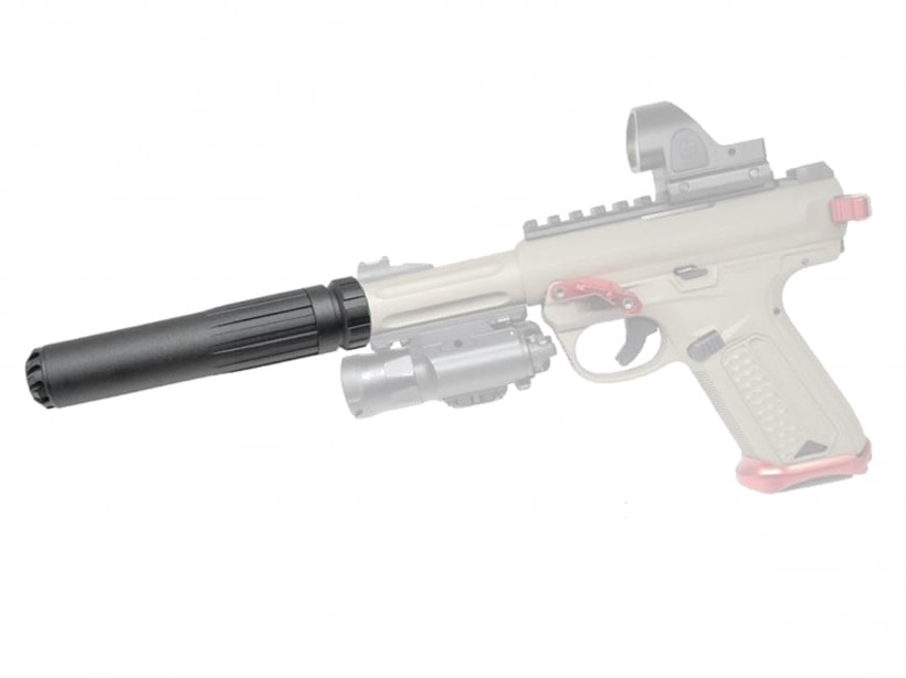 [ACTION ARMY] AAP-01 アサシン用 サイレンサー FDE U01-017-2 (新品) 製品参考画像 装着時参考画像。※銃本体は付属しません。