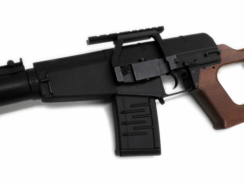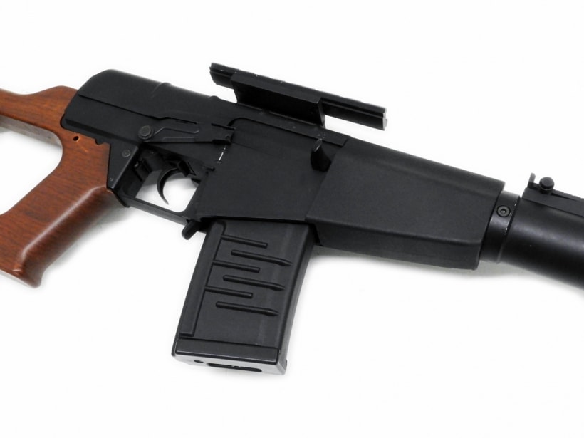 ”AS VAL” 日本語訳「特殊自動小銃」は、特殊部隊スペツナズのためとしてAK47をベースにソ連が開発した消音アサルトライフル。台湾の高級トイガンメーカーLCTに続いて、香港S&Tからモデルアップ。フェイクウッド、ストックモデル。VSSはその狙撃銃モデルに当たる。